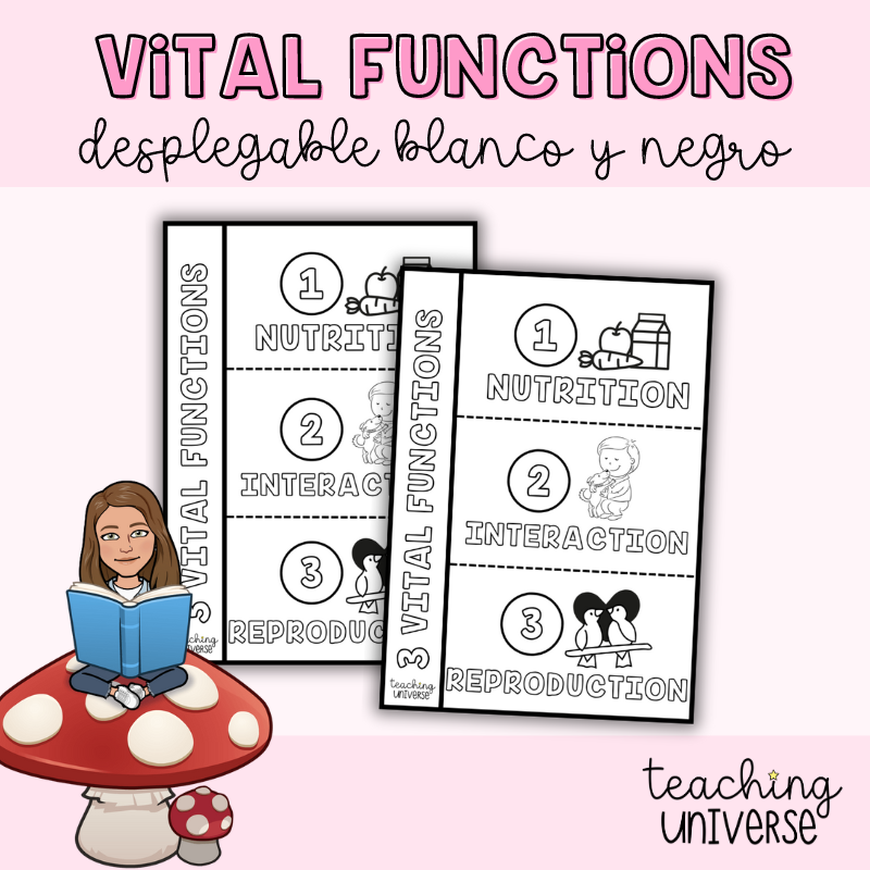 Desplegable en blanco y negro para completar con información sobre las 3 funciones vitales.