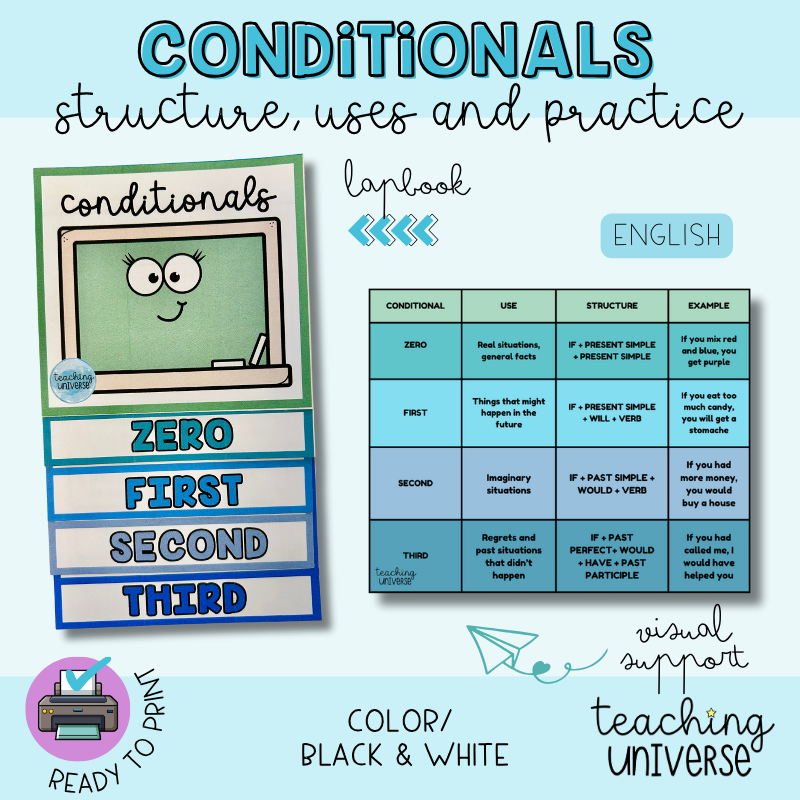 📚 Do your students struggle with conditionals? This interactive lapbook and visual support provide everything they need in one place: theory, structure, and practice, all explained in a clear and engaging way.